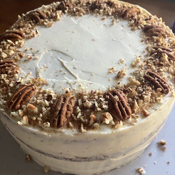 Hummingbird – banana, pineapple and pecan sponge with cream cheese filling and covering and finished with pecan nuts and cinnamon